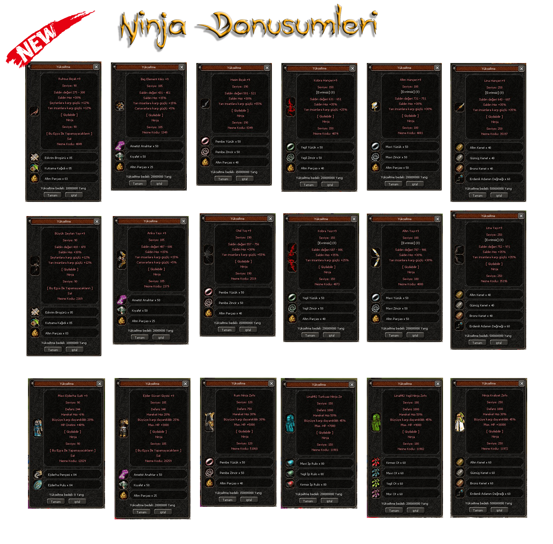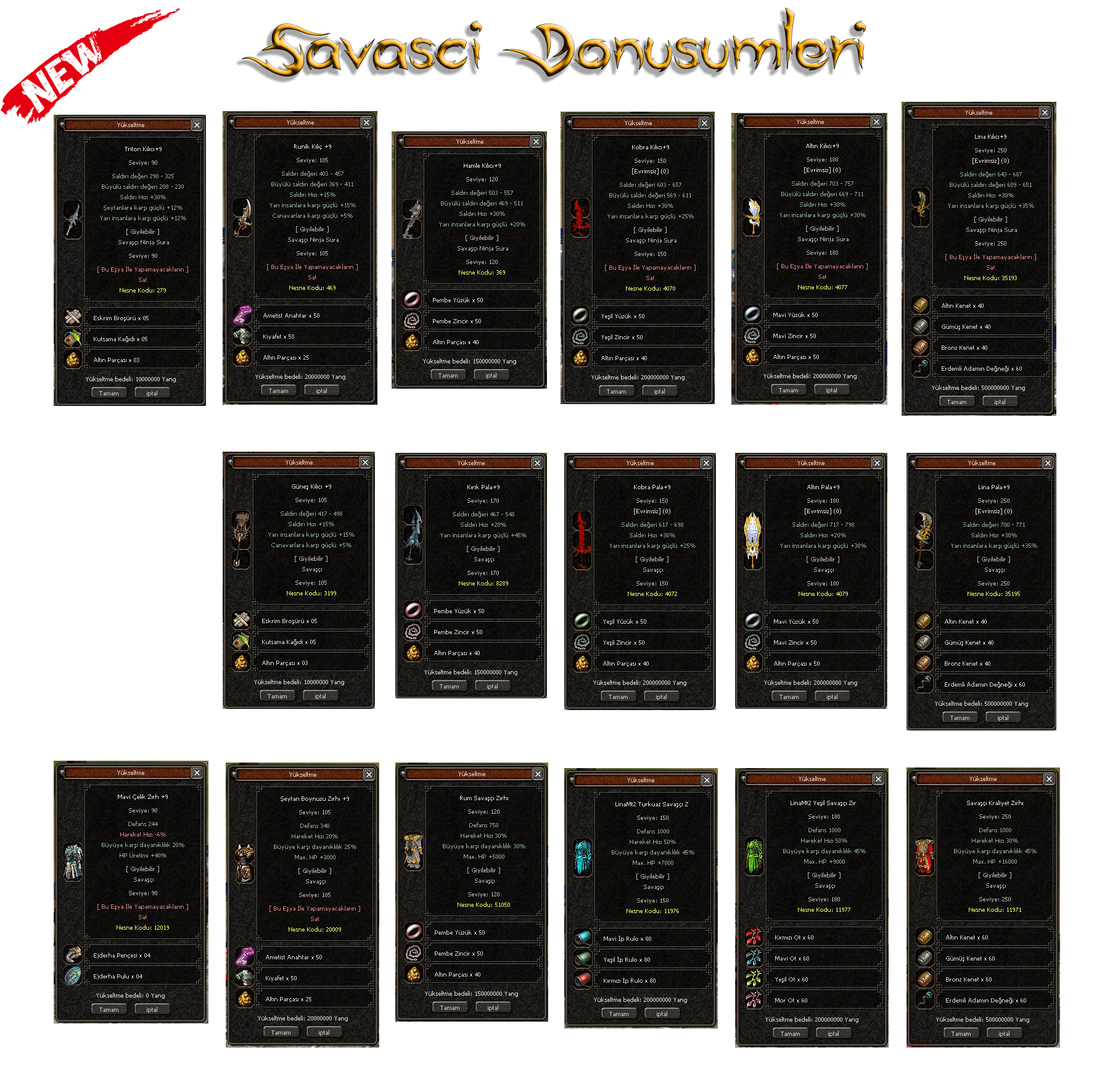 Yeni Silah Fişleri ve Zırh Kostumleri